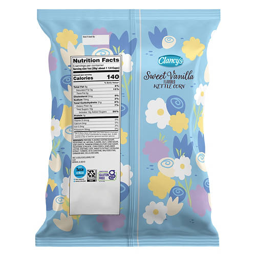 Clancy's Sweet Vanilla Flavored Kettle Corn is a delightful snack with a sweet vanilla twist. This kettle corn is perfect for movie nights, parties or a mid-day treat. The blend of sweet and savory flavors makes it a crowd-pleaser. Enjoy the unique taste of Clancy's Sweet Vanilla Flavored Kettle Corn for a delicious and satisfying snack.