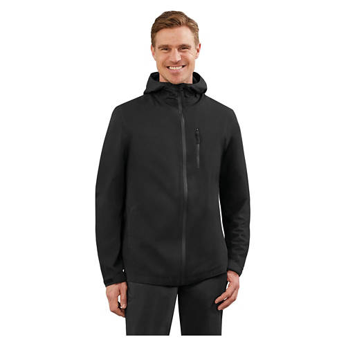 Men's Rain Jacket All styles 100% Polyester Waterproof, wind resistent, Bionic Finish by Rudolf Group, wind proof Contrast fabric in lower body, zipper pockets at hips & left chest, adjustable velcro cuffs OEKO-TEX Certified