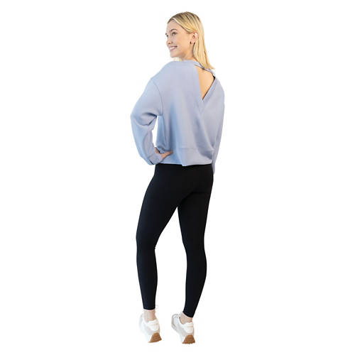 Premium Active Pullover All styles: 53% Modal, 42% Recycled Polyester, 5% Elastane Blue style features thumb holes at cuffs and ribbed detail around collar and open back OEKO-TEX Certified