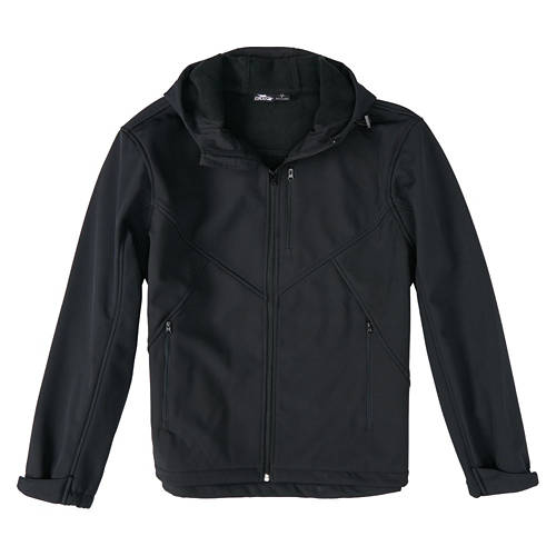 Softshell Jacket All styles: 92% Polyester, 8% Elastane Waterproof, windproof, breathable, BIONIC FINISH by Rudolf Group Features hood with adjustable toggle, full zipper, front pockets at hip & left chest Also features chin guard, elastic drawcord at hips, elastic cuff at wrists OEKO-TEX Certified