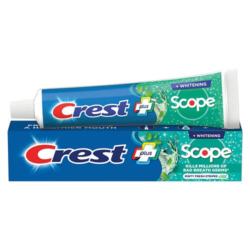 Take care of your oral hygiene with this Crest Complete Whitening Plus Scope Mint Toothpaste! The fluoride toothpaste is packed with Crest whitening power and Scope to kill germs that cause bad breath. Grab a few tubes to keep your family's teeth and gums clean for weeks!