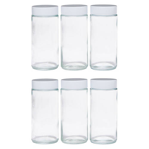Great for storing a variety of dry spices Glass design that includes shaker 6pk 4.0oz Lid help keep freshness intact Comes with 6 spice labels and 3 blank labels