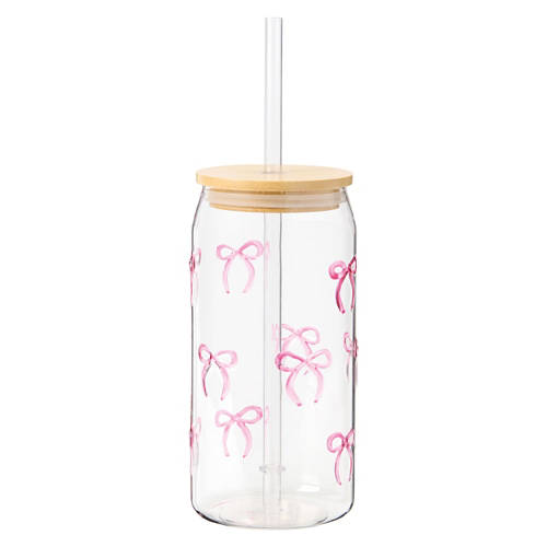 But full of possibilities16 oz Glass Cup with Straw - Pink Bows