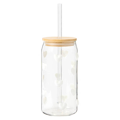 But full of possibilities16 oz Glass Cup with Straw - White Hearts