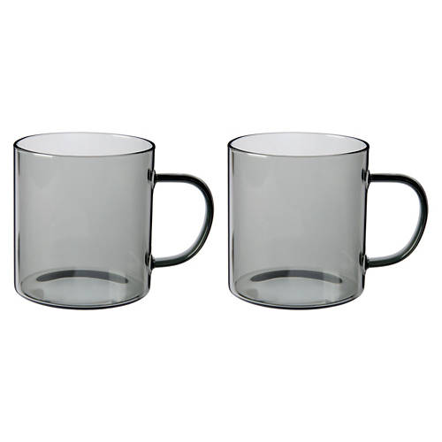 2 Pack Grey Glass Coffee Mugs