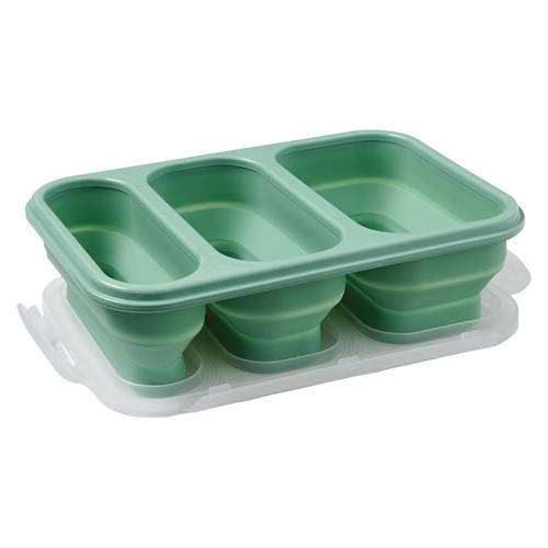 3 Compartment Collapsible Food Storage Box, Green