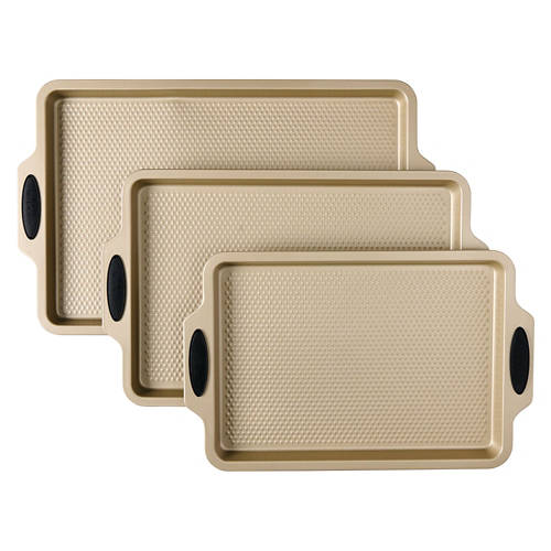 3 Piece Cookie Sheet Set, Diamond Pattern Gold