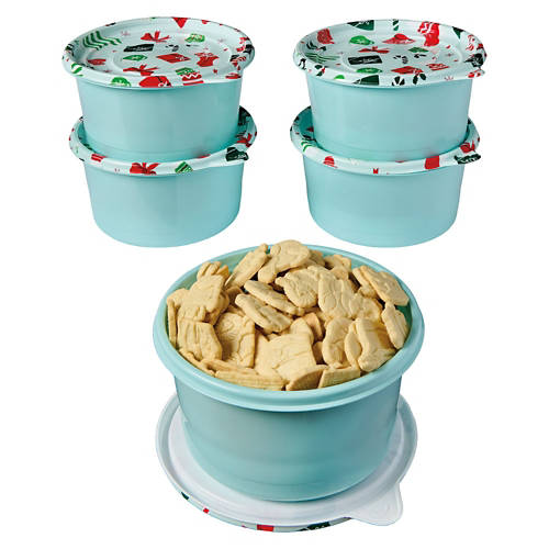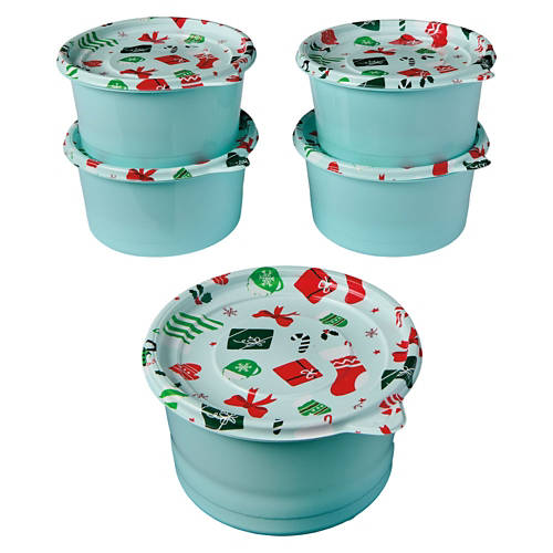 5 Pack Holiday Round Food Storage Containers - Christmas