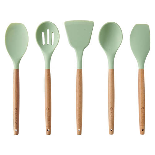 5 Piece Wood & Silicone Utensil Set, Green