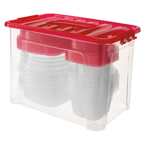 50 Piece Food Storage Containers - Red Lid