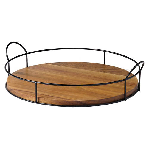 Acacia Wood Black Wire Tray