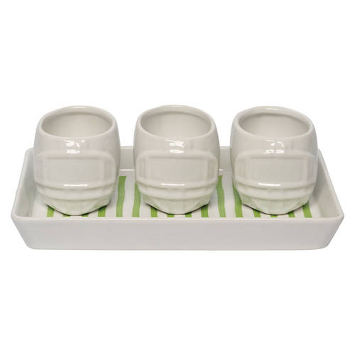 But full of possibilitiesCeramic Helmet Bowls with Serving Tray