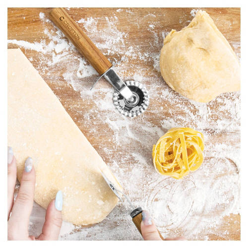 Pasta Cutter: Set includes a straight edge cutter and a fluted edge cutter. Hand wash only.