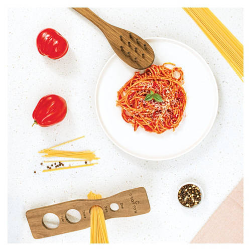 Measuring Tool & Pasta Fork: Set includes a pasta fork and a pasta measuring tool made of acacia wood. Hand wash only.