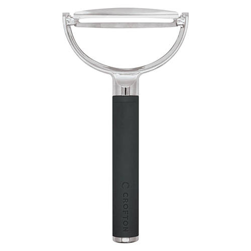 Large Y-peeler: Wide blade for peeling large vegetables with tough skin. Features soft-grip handle. Top rack dishwasher safe.