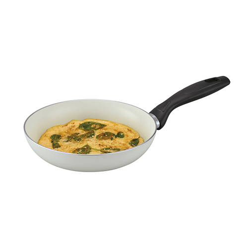 Mini Ceramic Frying Pan: Aluminum Pan for quick and even heating. Ceramic nonstick coating for superior release and easy cleanup. Suitable for all cooktops, including induction. Heat resistant, comfort grip handle. The pan is made from 90% recycled aluminum material. Ideal for small portion meats, panini's and even your favorite grilled cheese.