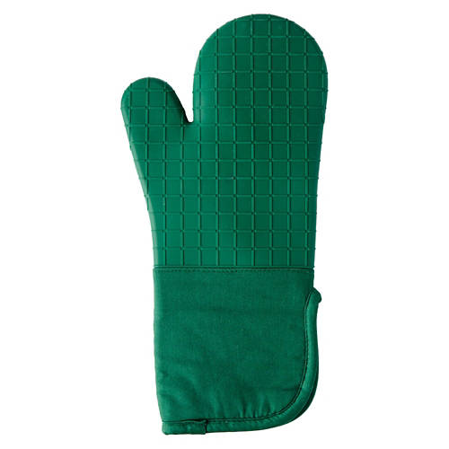Oven Mitt or Potholder: Shell (non-textile): Silicone Rubber; (textile): 100% Cotton; Lining: 100% Cotton; Filling: 100% Polyester Non-slip grip, heat resistant up to 500 F, quilted cotton lining Care instructions: hand wash warm. Only non-chlorine bleach when needed. Lay flat to dry. Do not iron.