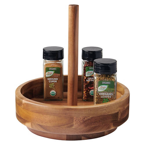Available in Rotating Wooden Caddy Dimensions Diameter: 9" Use and Care: Use a damp cloth to wipe clean Do not submerge in water. Dry thoroughly after cleaning. Store in a well-ventilated place. Avoid direct sunlight in order to prevent deformation and discoloration. Do not use abrasive detergent for cleaning