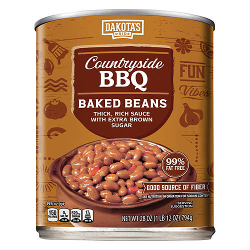 Dakota's Pride Countryside BBQ Baked Beans are smothered in a thick, rich sauce with extra brown sugar. These beans are 99% fat-free and a good source of fiber. Ideal for barbecues, picnics or as a hearty side to any meal, they are sure to satisfy. Add them to your favorite dishes for a touch of sweetness and a burst of flavor. Dakota's Pride BBQ Baked Beans make every meal better.