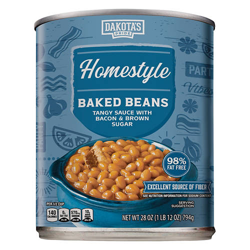 Elevate your next backyard barbecue with these Dakota's Pride Homestyle Baked Beans! The hearty baked beans sit in a tangy sauce flavored with brown sugar and bacon for a sweet and savory bite. Team yours with meaty ribs, mac 'n' cheese, and corn on the cob for the perfect dinner!