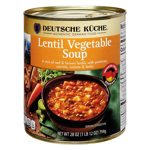 Take the guesswork out of tonight's dinner with this Deutsche Küche Lentil Vegetable Soup! The hearty soup is packed with red and brown lentils, carrots, potatoes, onions, and leeks in a savory broth. Just heat yours up on the stove for a tasty and filling meal in minutes!