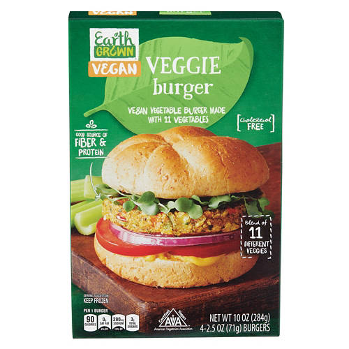 No night by the grill is complete without these Earth Grown Vegan Veggie Burgers! Made with a blend of 11 fresh vegetables, each frozen veggie burger is packed with fiber and protein and is cholesterol free. Top this healthy burger with crisp greens, your favorite vegan condiments, and a creamy cheese alternative to complete your meal!