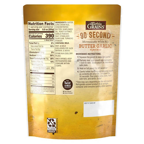 Earthly Grains Butter Garlic Flavored Ready to Serve Rice delivers rich, savory flavors in just 90 seconds. Ideal for busy weeknights or a quick lunch, this microwavable white rice pairs perfectly with grilled chicken, steamed vegetables or a fresh salad. It’s a satisfying and flavorful addition to any meal. Enhance your dining experience with Earthly Grains Butter Garlic Rice.