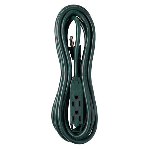 3 Outlets Outdoor Power Cord - 15 Feet, Green