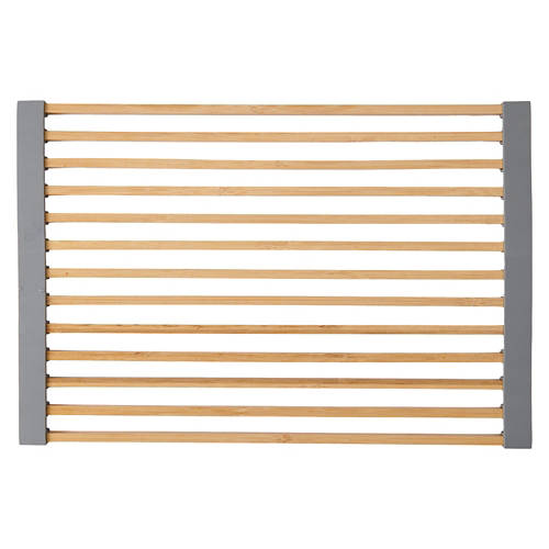 Bamboo Roll-up Rack: -Bamboo rack with silicone ends -Rolls up when not in use for easy storage -Dimensions: 17.52 in L x 12.1 in W x .35 in H