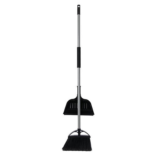 Angled Broom with Dust Pan. Great for indoor and outdoor surfaces. Dust pan conveniently clips onto handle for easy storage.