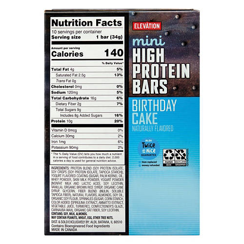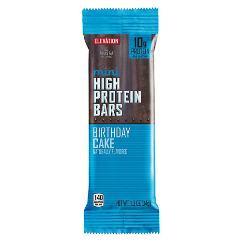 Fuel a busy day with these Elevation Birthday Cake Mini High Protein Bars! Each miniature protein bar is packed with 10 grams of protein and bursts with sweet birthday cake flavor in every bite. Reach for yours during a day full of meetings, or grab one before heading to the gym to keep your energy up!
