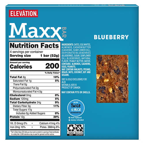Whether you need a quick breakfast, a post-workout boost or a midday pick-me-up, Elevation Blueberry Maxx Bars from ALDI are designed to fuel your day while keeping your taste buds happy. Perfectly portable and protein-packed, these individually-wrapped bars offer a burst of fruity goodness that will keep you energized and ready for whatever comes next!