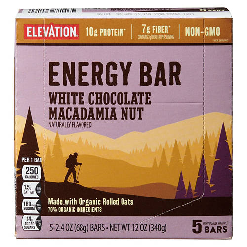 Elevation White Chocolate Macadamia Nut Flavored Energy Bars are packed with 10g of protein and 7g fiber per bar. These bars are perfect for hikes or midday boosts. They're a wholesome and satisfying choice. Add Elevation White Chocolate Macadamia Nut Flavored Energy Bars to your cart today to fuel your adventures.