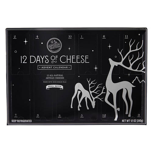 Emporium Selection Advent Calendar - 12 Days of Artisan Cheese offers a delightful countdown with 12 all-natural artisan cheeses made with Wisconsin milk. Each day reveals a new flavor to explore. Perfect for adding excitement to your holiday gatherings or gifting to a cheese lover. With small batch production, this calendar ensures quality in every bite. Indulge in a daily cheese adventure with Emporium Selection.