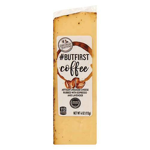 The perfect unique party cheese that is easy to pair, stunning to look at, and the guaranteed eye catcher on any cheeseboard. This cheese is rubbed with real espresso and lavender with notes of butterscotch and caramel. This is a full-bodied cheese with a nutty flavor and smooth texture. This cheese is aged for 6–8 months by master cheesemakers.
