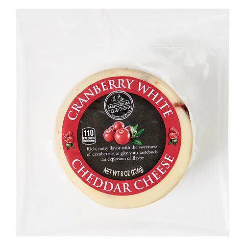 Emporium Selection Cranberry White Cheddar Cheese is a rich, nutty delight infused with the sweetness of cranberries for an explosion of flavor. This cheese is ideal for adding a unique twist to your cheese boards or enhancing the taste of your favorite sandwiches. Perfect for entertaining or simply indulging, it brings both sophistication and a burst of taste to any meal. Experience the delicious blend of flavors today.