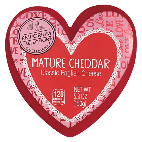 No charcuterie board is complete without this Emporium Selection Mature Cheddar Classic English Cheese! The heart-shaped cheese truckle is cut from sharp cheddar cheese that has been matured in England. Pair yours with buttery crackers, cured meats, & hearty nuts for the ultimate V-Day party snack!