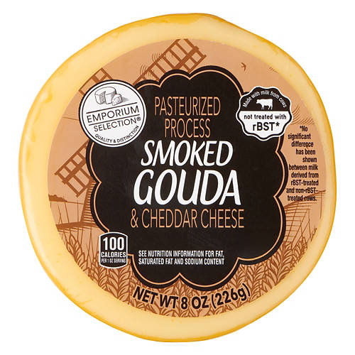Blue Cheese Wedge features traditional attributes blue cheese lovers seek: a delectably rich and tangy flavor with an easy to crumble texture. Emporium Selection Smoked Gouda encompasses a nutty taste with a remarkably smoky flavor.