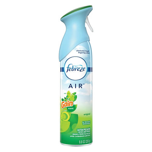 Clear away lingering odors with this Febreze Gain Original Air Effects Air Freshener Spray! The air refresher is packed with the gentle scent of original Gain laundry detergent to lighten up any room. Stock yours in the bathroom, kitchen, or laundry room to keep your home smelling fresh!