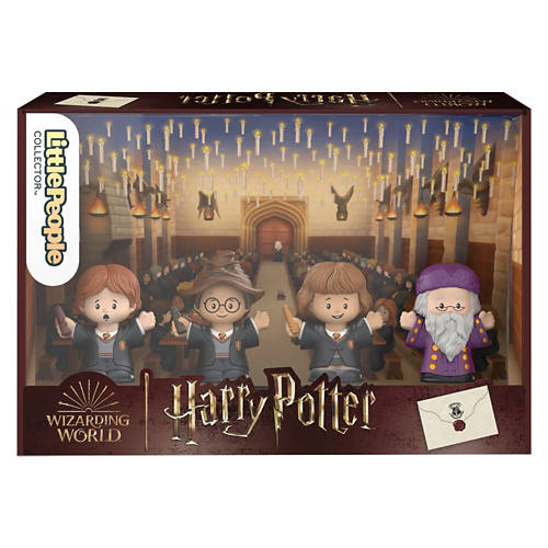 Little People® Collectors Harry Potter - Witches, wizards, and Muggle fans alike will love remembering their first trip to the magical castle of Hogwarts with this special edition Little People Collector set commemorating the first film in the Harry Potter series, Harry Potter and the Sorcerer’s Stone. Relive the Sorting Ceremony at Hogwarts School of Witchcraft & Wizardry with this collectable set, which features Harry Potter, Ron Weasley and Hermione Granger all in their school uniforms, plus headmaster Albus Dumbledore in his purple robes. The decorative window box package brings the Hogwarts Great Hall to life in beautiful detail for collectors and fans to admire. Age Grade: 8Y+