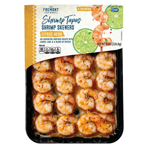 Fremont Fish Market Citrus Herb Shrimp Skewers bring a zesty, Argentine-inspired flavor to your table. Marinated with lemon, lime and a blend of spices, these shrimp skewers are ready to grill or bake. Perfect for adding a gourmet touch to your meals, pair them with salads, rice or pasta. With only 90 calories per serving, it's an easy way to enjoy delightful seafood without the fuss.