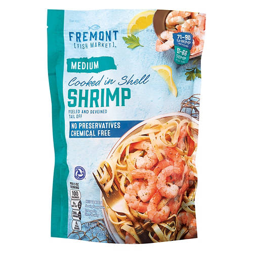 Craving seafood? Try Fremont Fish Market Medium Cooked in Shell Shrimp from ALDI. These easy to prepare shrimp are all natural, have no preservatives, and are chemical free. These frozen shrimp are also peeled, deveined, and have no tail, so all you have to do is throw them in the oven, let them cool off, and eat them. Try these tasty shrimp over pasta, with corn and beans, or with roasted potatoes.