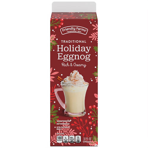 Friendly Farms Traditional Holiday Eggnog is a rich and creamy holiday classic that brings festive cheer to your celebrations. Perfect for serving chilled or adding to your favorite holiday recipes, this ultra-pasteurized eggnog is your go-to for an indulgent treat. With a delightful blend of spices, it’s the ideal addition to holiday gatherings. Enjoy the comforting taste of Friendly Farms Traditional Holiday Eggnog this season.