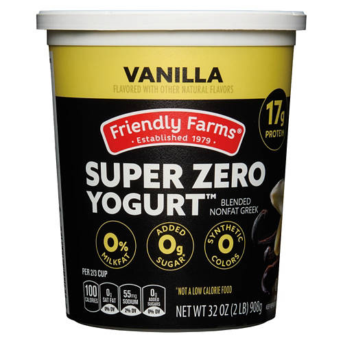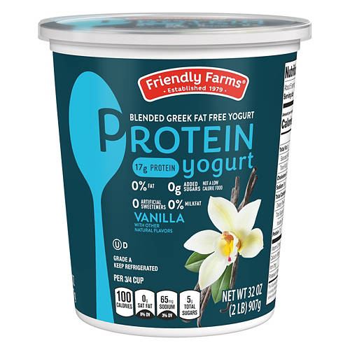 Friendly Farms Vanilla Fat Free Protein Greek Yogurt offers a delicious and nutritious option with 17g of protein per serving. With 0% fat and 0g added sugars, this yogurt is perfect for breakfast or a midday snack. Enjoy it on its own or add it to smoothies and parfaits. Friendly Farms Vanilla Fat Free Protein Greek Yogurt is a smart choice for those seeking a tasty and healthy treat.
