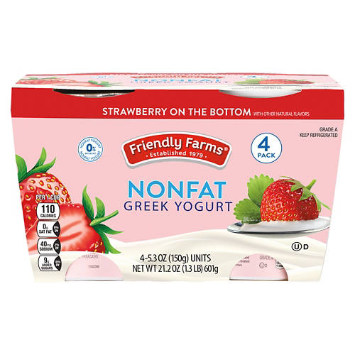 Satisfy your cravings and fuel your day with Friendly Farms Strawberry on the Bottom Greek Yogurt from ALDI. Perfectly portioned for a convenient breakfast or snack. Enjoy on its own or add granola, fresh fruit or chocolate chips for extra indulgence. A tasty way to enjoy the goodness of fruit and dairy in every spoonful.
