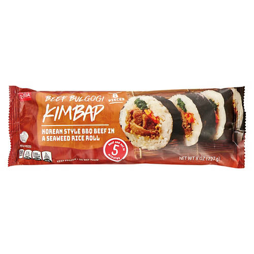Fusia Asian Inspirations Korean Style Kimbap Beef Bulgogi is a flavorful and easy meal option. Each pack includes eight pieces of seasoned beef bulgogi wrapped in seaweed and rice. Just heat and eat in 5 minutes. Ideal for lunch or a quick dinner. Savor the taste of Korea with Fusia Asian Inspirations Kimbap Beef Bulgogi.