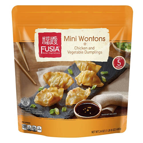 Fusia Asian Inspirations Mini Wonton - Chicken & Vegetable Dumplings are a delightful addition to your meals. These fully cooked dumplings are ready to eat in just 5 minutes. Perfect for appetizers, soups or as a main dish, they bring a touch of Asian flavor to your table. Keep frozen and microwave for a quick, savory meal. Enjoy the delicious taste of Fusia Asian Inspirations Mini Wonton Dumplings today.