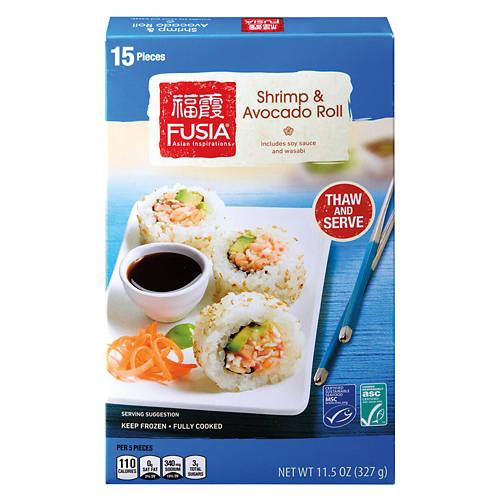 Fusia Asian Inspirations Shrimp & Avocado Sushi Rolls are your go-to for a quick, delicious meal. Thaw and serve for a satisfying lunch or dinner. Each roll features succulent shrimp and creamy avocado, perfectly paired with included soy sauce and wasabi. Ideal for a light meal, appetizer or party platter, these rolls offer a taste of gourmet sushi from the comfort of home. Enjoy the convenience and flavor in every bite.