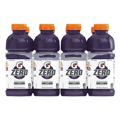 Stay strong after a tough gym session with this Gatorade G Zero Grape Sports Drink! The zero sugar sports drink is packed with tasty grape flavor and tons of electrolytes to help you recover and refuel. Keep the 8 pack of energy drinks in your fridge so you're ready for any workout!