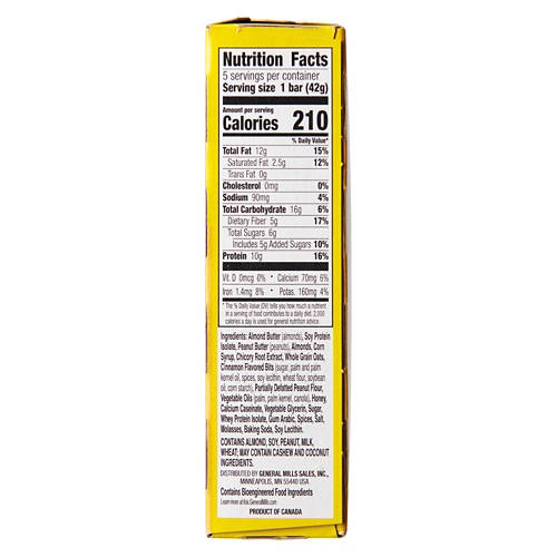 General Mills Cinnamon Almond Creamy Protein Bars deliver 10 grams of protein per bar. These bars are perfect for a quick pick-me-up, offering a blend of cinnamon and almond butter flavors. Ideal for a post-workout bite or a mid-day boost, these bars provide a delicious way to fuel your day. Grab a box and power through your routine.
